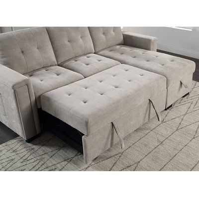 • L型 リバーシブルセクションスリーパーソファ 引けるベッドと貯蔵庫,暖かい灰色チェニール